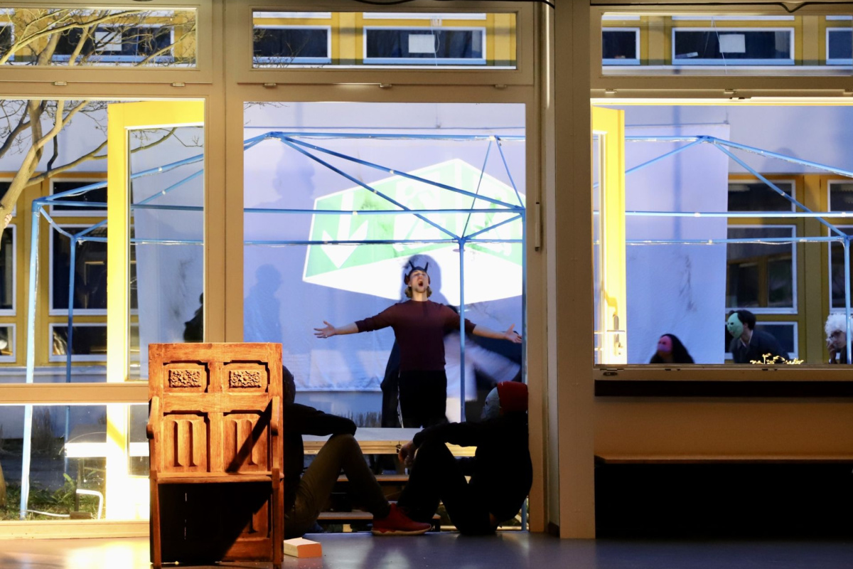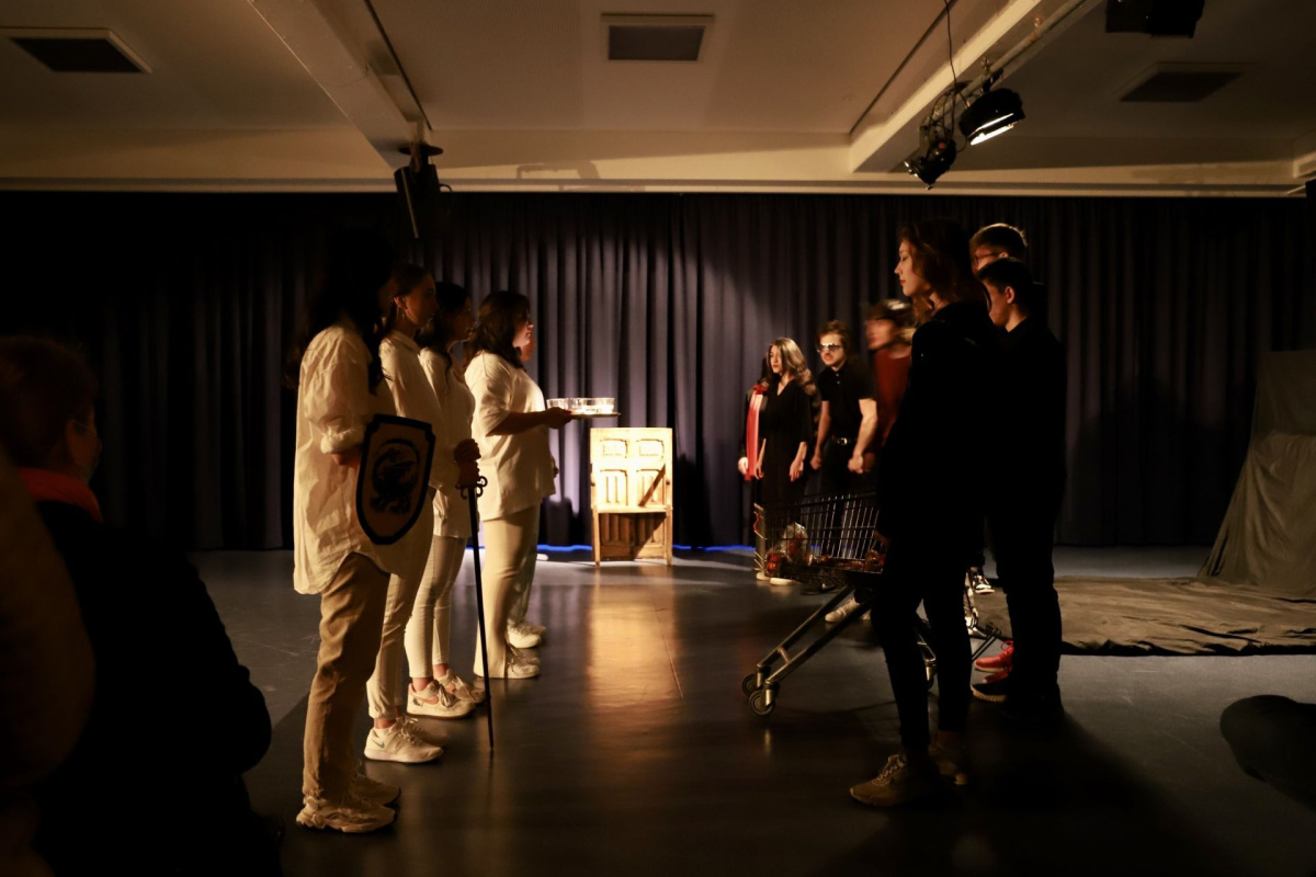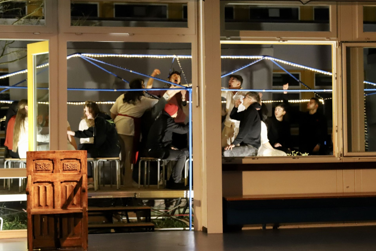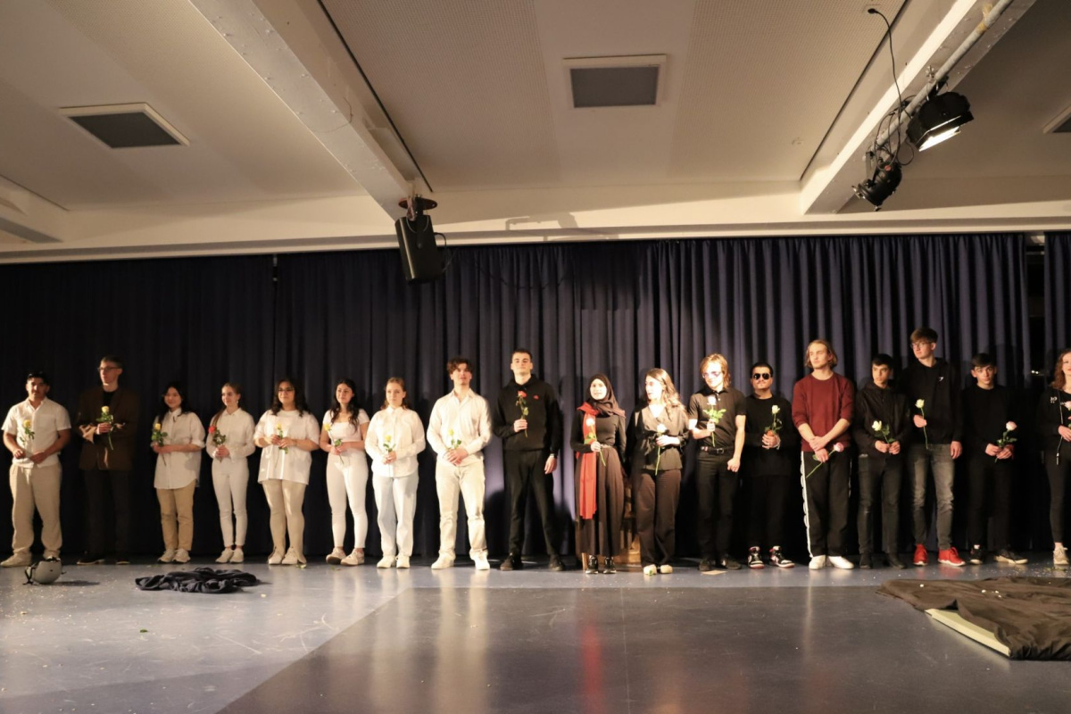 Der Abiturjahrgang des Wahlpflichtkurses Wp12 spielte zwei erfolgreiche Aufführungen am 29. und 30. März in der Pausenhalle und im Innenhof, mit seiner Klassiker-Version "Auf eigene Faust". Begeisterter Beifall von der voll besetzten Zuschauertribüne bestätigte den außerordentlichen Einsatz der Spieler:innen. Eine tolle Leistung aller Beteiligten!