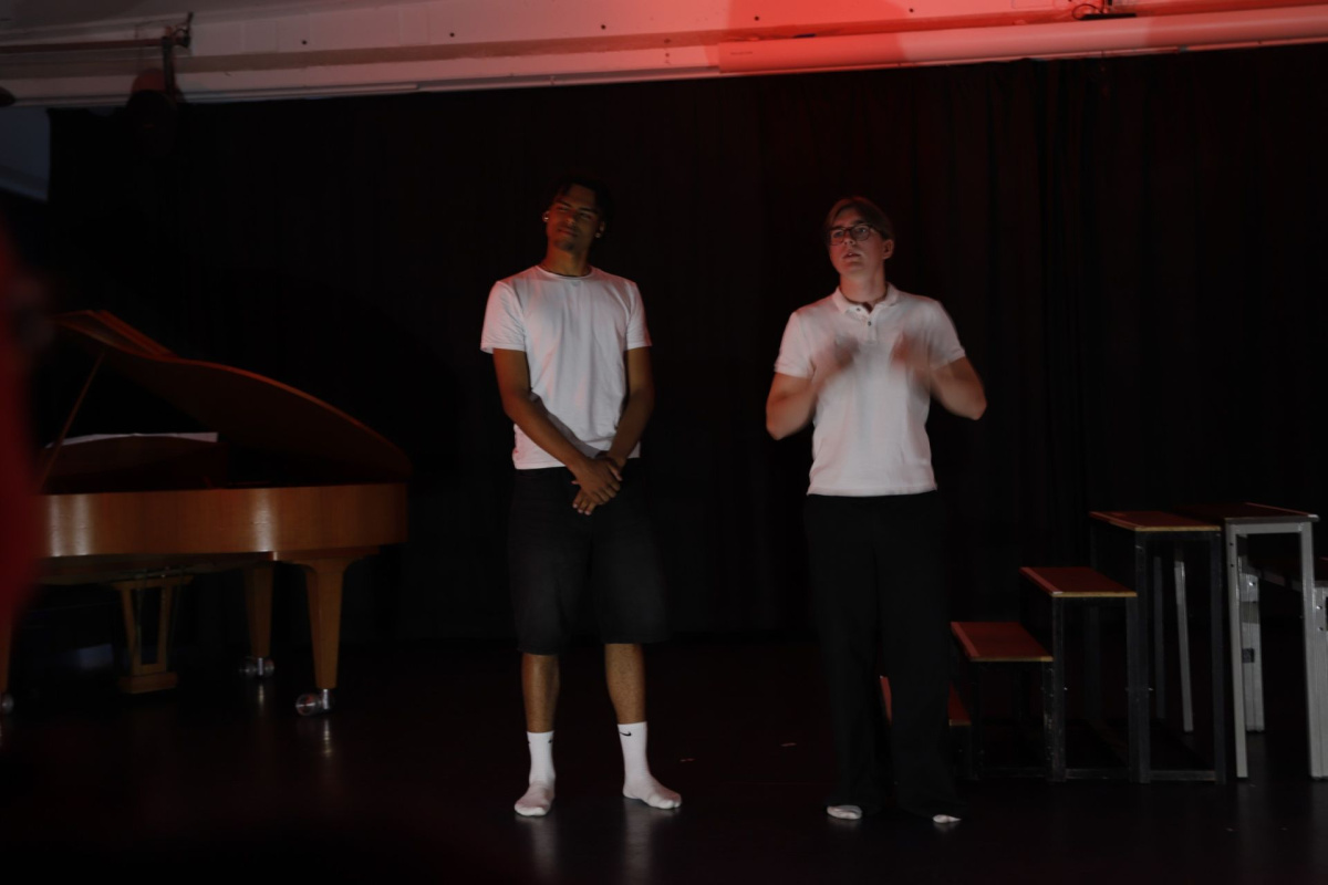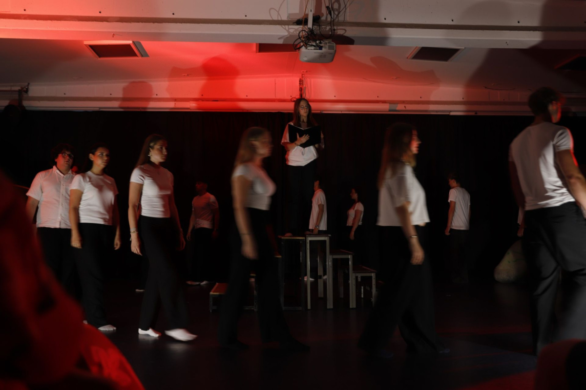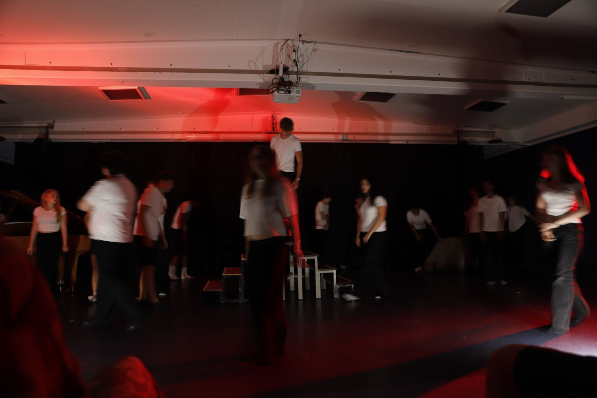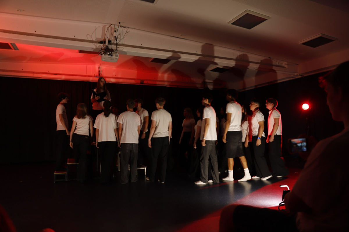 In einer eigenen Interpretation von Samuel Becketts „Warten auf Godot“ lud der Theaterkurs dazu ein, innezuhalten und nachzudenken. Durch abstrakte Dialoge, Tanz, eine unheimliche Figur und Livemusik brachten die Darsteller:innen das beklemmende Gefühl des Wartens auf eindrucksvolle Weise auf die Bühne.