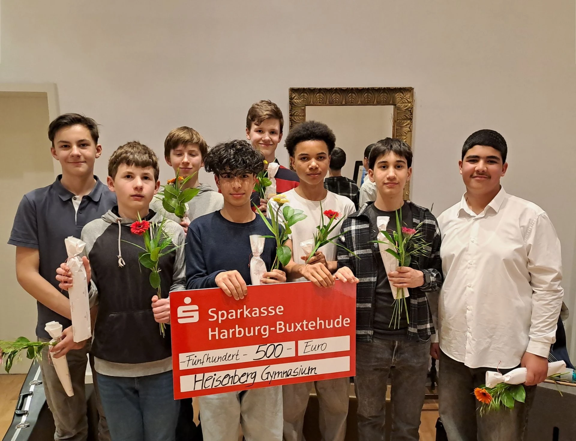 Nach einem szenischen Auftritt im Hotel “Lindtner”, konnten die Spieler aus dem Wahlpflichtkurs Theater 8, Mazlum Dogan, Hasan Doruk, Hamza Kirgec, Felix Hagemann, Florent Hetemi, Jonas Jäger, Philip Meinck und Samuel Ozoemena einen Scheck über 500 Euro entgegennehmen.