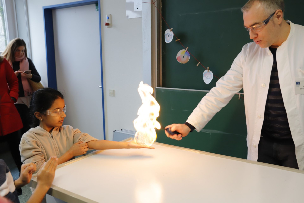 Was haben unsere Kids und Kolleg:innen da wieder auf die Beine gestellt: von der Zirkus-AG über sportliche Spielübungen, das Projekt Step by Step, Austesten von Sprache in Latein, Spanisch und Französisch und natürlich auch in Englisch bis hin zum Theaterspielen. In den naturwissenschaftlichen Fächern wurde experimentiert und erforscht, in der Kunst wurden neue Werke geschaffen, bei den gesellschaftlichen Fächern konnte man Neues und Altes entdecken, es gab viel Beifall für unsere Rock-Band, unsere Kleinsten „Fortefortissimo“-Kids und die Greenhorns und so vieles mehr! In Gesprächen mit Eltern, Schüler:innen, Kolleg:innen und der Schulleitung, aber auch beim Probeunterricht in Englisch und in Mathe konnte man sich heute einen Einblick über die Arbeit an unserer Schule verschaffen - immer mit dem Duft leckerer Waffeln in der Nase oder einem Stück selbstgebackenem Kuchen in der Hand… und wenn ihr das Heisenberg-Rätsel gelöst habt, hatten die Klassenlehrer:innen der neuen 5. Klassen sogar einen kleinen Preis für euch!