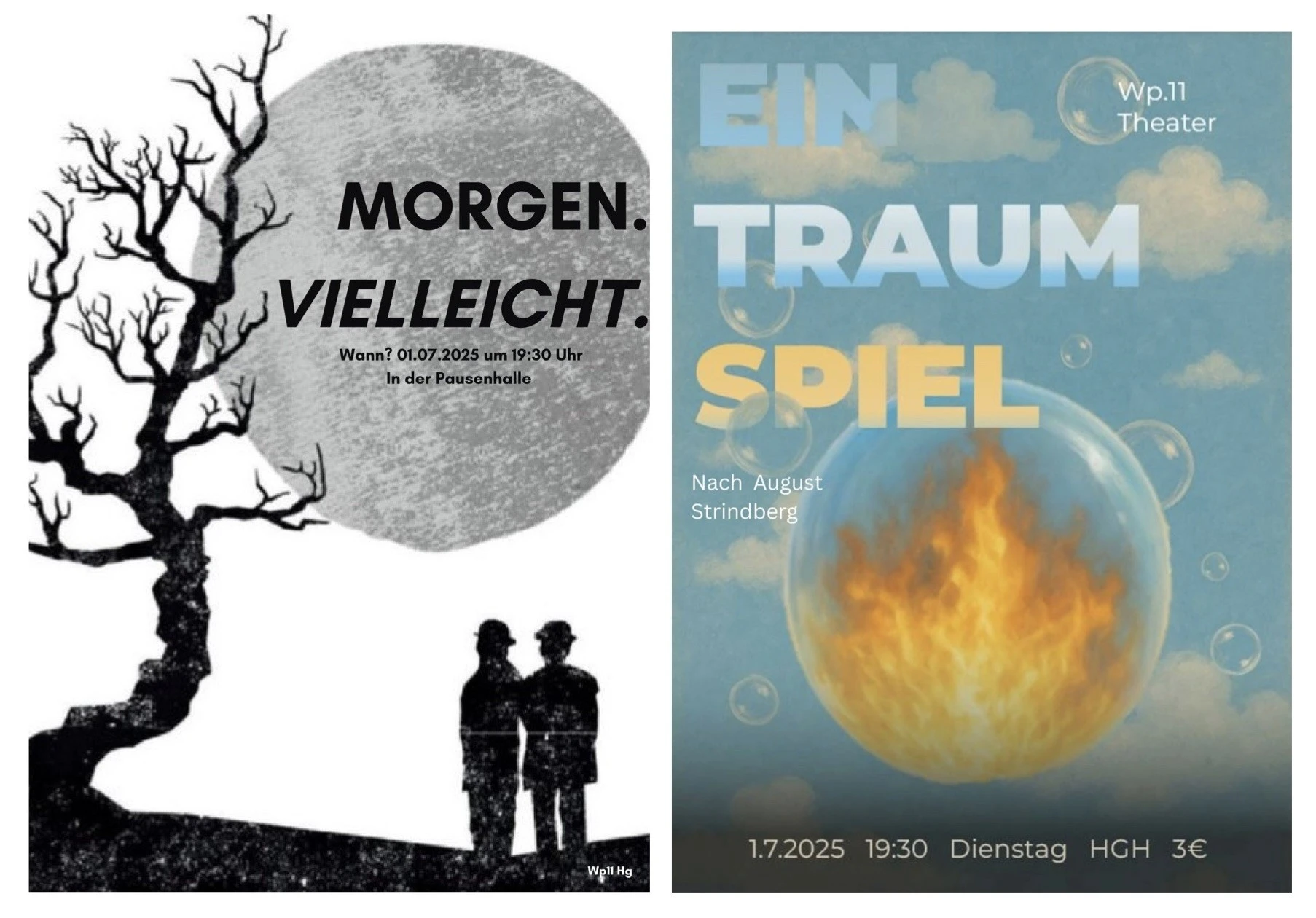 Die Kurse aus Jahrgang 11 präsentieren ihre Produktionen und freuen sich ab 19:30 Uhr über euer Kommen!