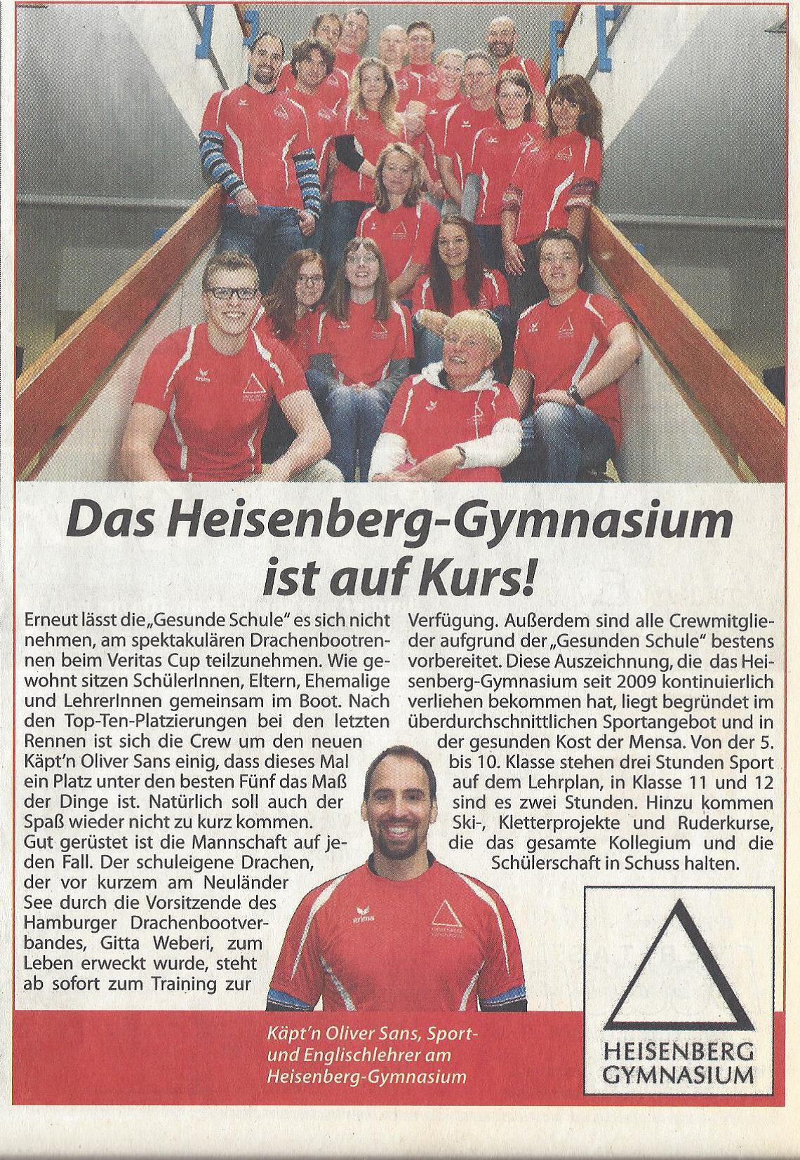 Gesundheits- und bewegungsfördernde Konzepte sind bereits seit einigen Jahren fester Bestandteil des Schullebens am Heisenberg-Gymnasium.