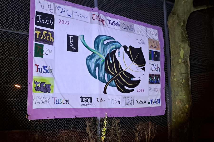 Schülerinnen aus der Begabungsförderung Bildende Kunst des Jahrgangs 6 überarbeiteten das tusch-Poster mit einem zweiten „tusch-Blatt“. Ihr Ergebnis ist nun auf dem Schulhof für die gesamte Schulgemeinschaft sichtbar. Neue Formate werden unser zweites Kooperationsjahr mit dem Deutschen Schauspielhaus Hamburg bereichern.