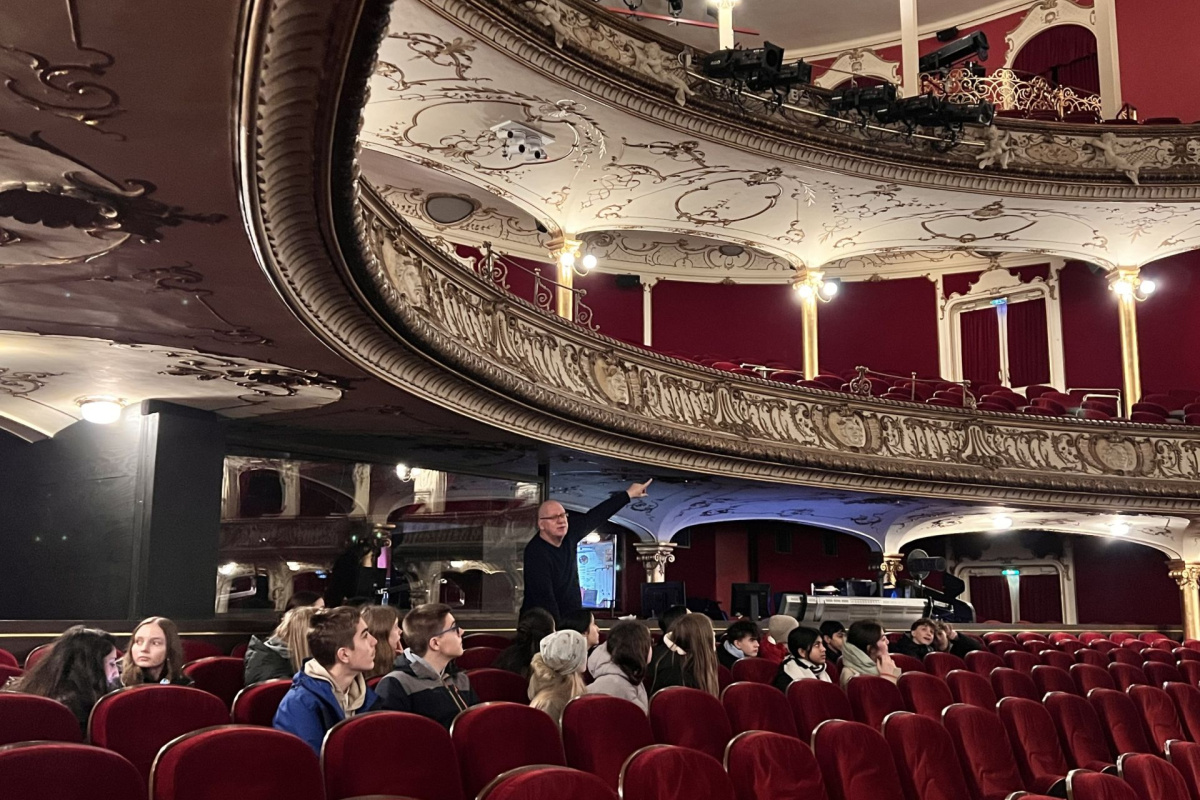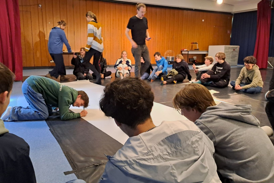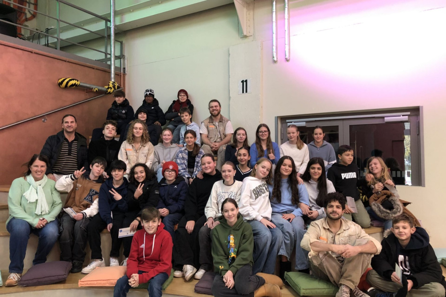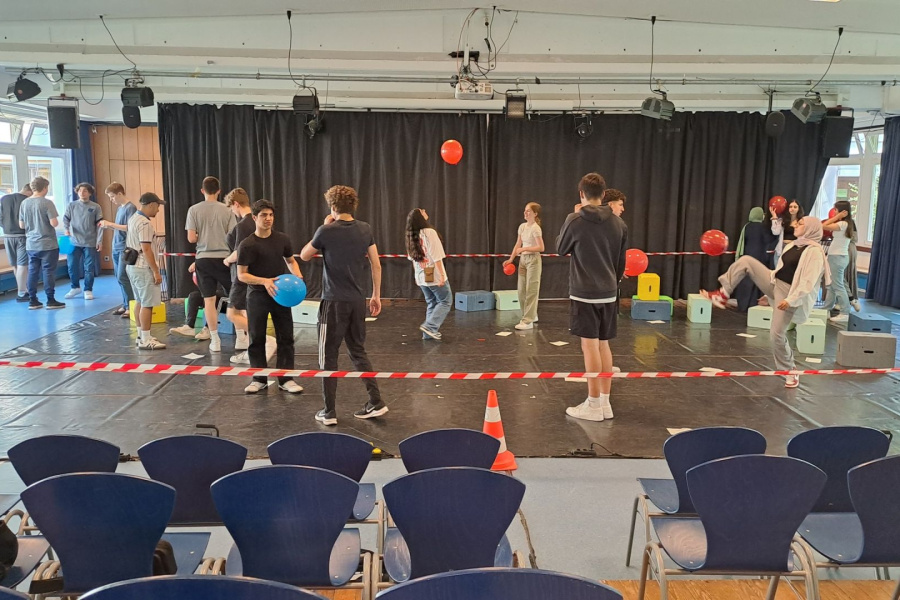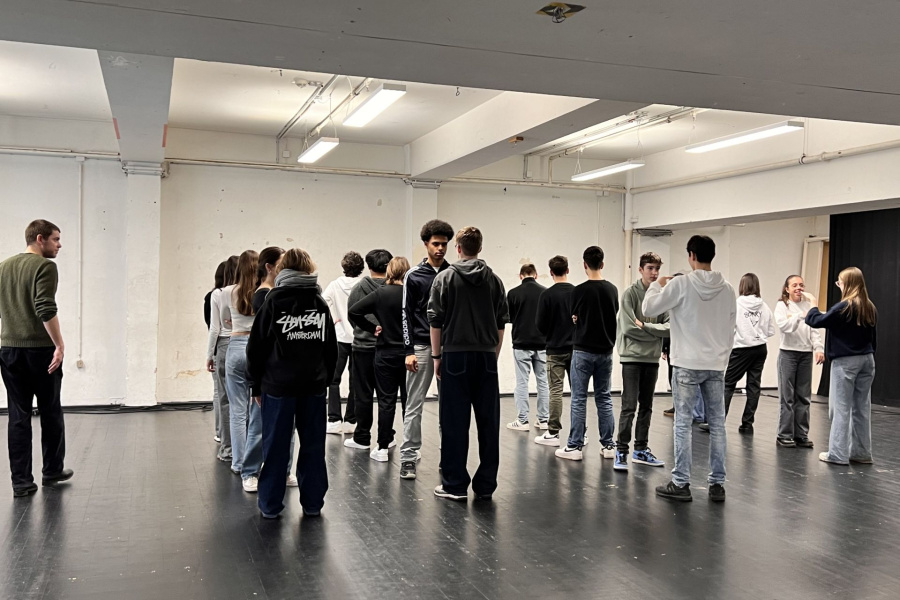 Am 19.02.2024 war ein Wahlpflichtkurs Theater aus dem Jahrgang 10 für einen Workshop zu Improvisation und unterschiedlichen Spielmethoden im Schauspielhaus. Unter der Leitung von Quintus Hummel haben unsere Schülerinnen und Schüler neue Impulse erhalten, die in der Stückentwicklung eingesetzt werden sollen.