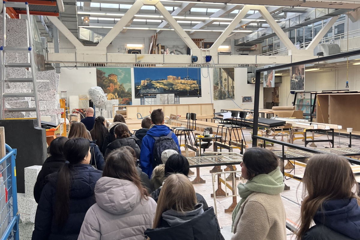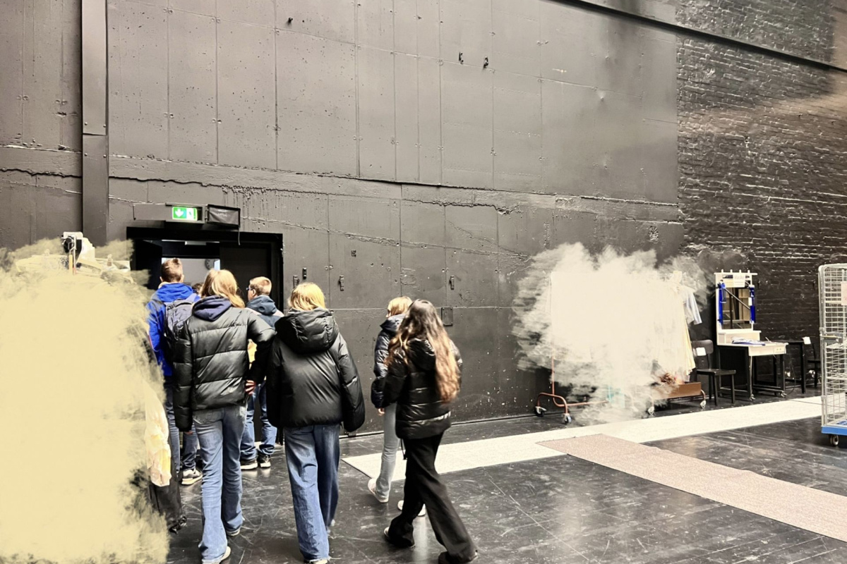 Ein Wahlpflichtkurs Theater aus dem Jahrgang 8 besuchte am 05.10.2023 die Aufführung „Die Asche meines Vaters“ im Jungen Schauspielhaus Hamburg. Nach der Vorstellung führte die Theaterpädagogin Marie Coring den Kurs auf die Drehbühne des Theaters und in den Backstage-Bereich: in Technik-, Garderoben- und Requisitenräume. Sie vermittelte spannende Einblicke in die Arbeitswelt an einem professionellen Theater.