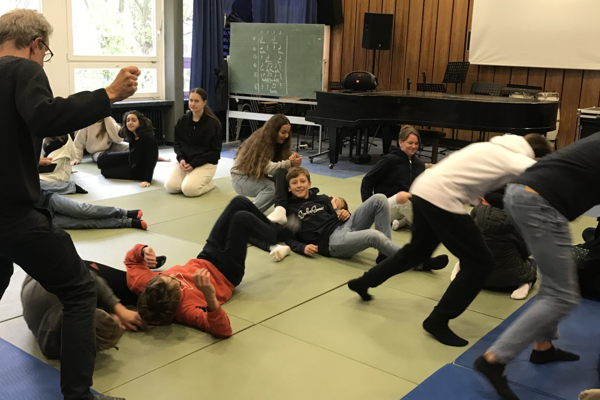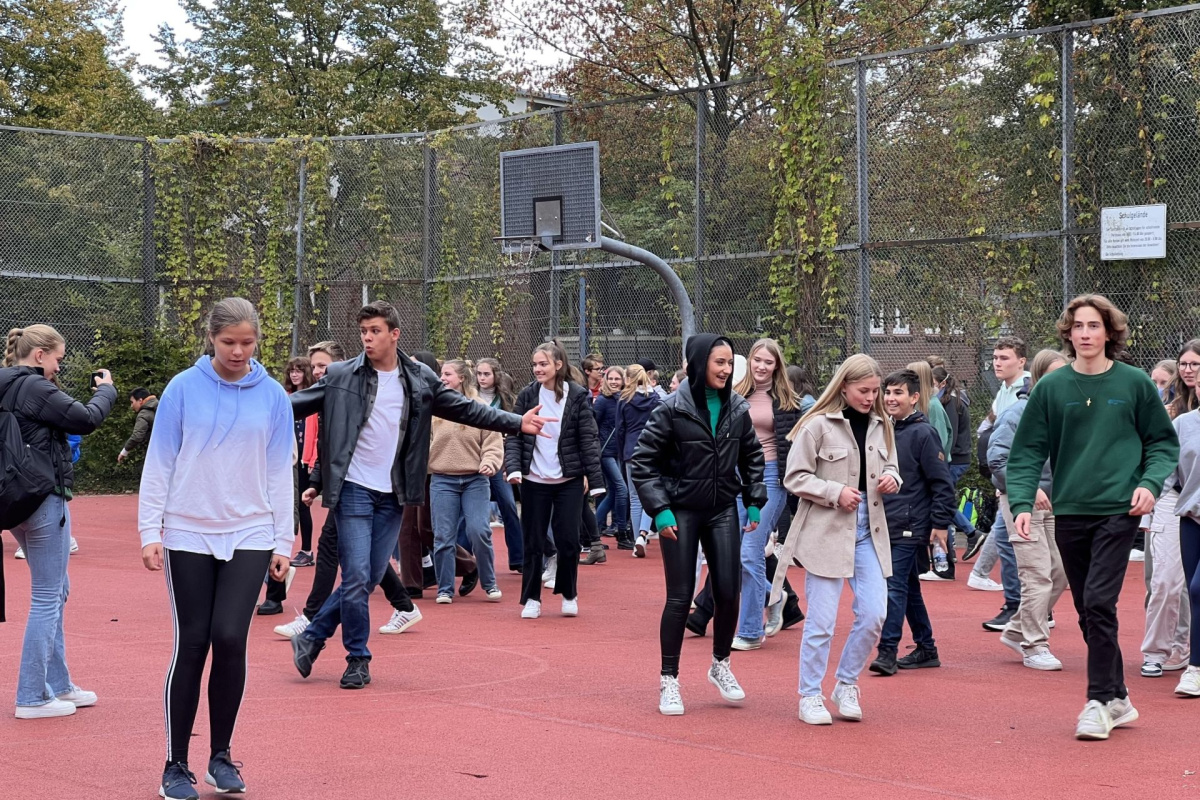 Am 01.02.2024 konnte ein Wahlpflichtkurs Theater aus dem Jahrgang 11 in der Pausenhalle an einem Tanz-Workshop teilnehmen. In zwei Doppelstunden förderte der Tänzer und Choreograf Papis Ba (Senegal) die Fitness und das Bewegungsverständnis der Schülerinnen und Schüler. Afro-Urban- und Street-Dance standen im Zentrum des Trainings. Die Choreografien erarbeitet sich der Kurs nun weiter, als Bestandteil der bevorstehenden Schulaufführung.