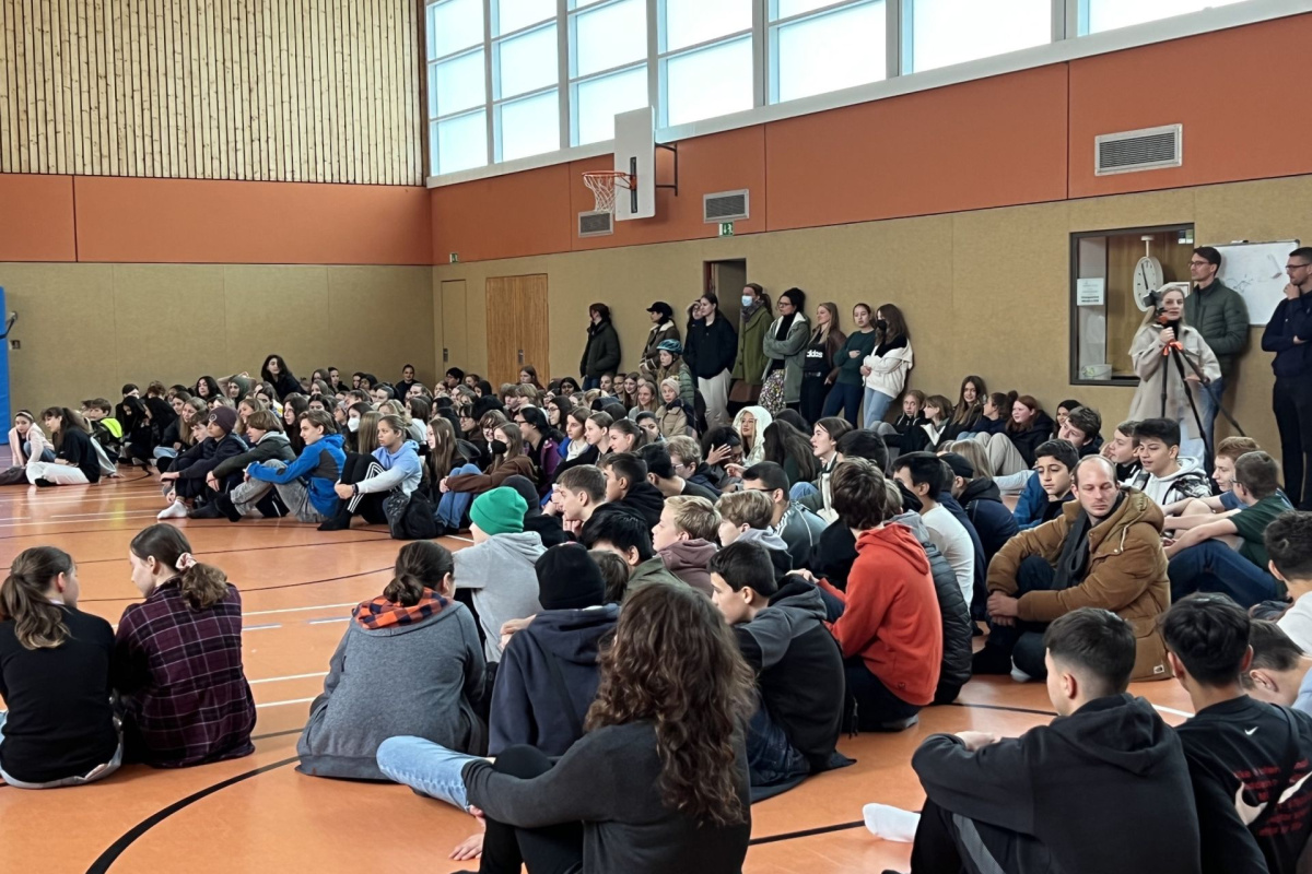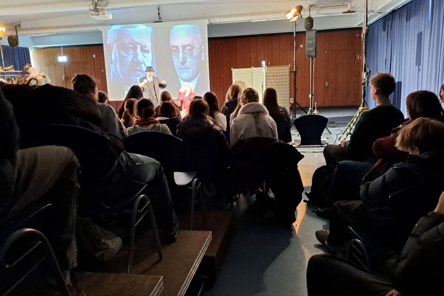 Für den gesamten Jahrgang 10 spielte das AXENSPRUNG THEATER ihren beeindruckenden dritten Teil der „WEIMAR TRILOGIE“, unter dem Titel „RUIN“, am 29.11.2024 in der Pausenhalle.Mit der szenischen Darstellung von Weltwirtschaftskrise, Ungewissheit, Propaganda, Hoffnung und Strassenkampf wurden das Ende der Weimarer Republik thematisiert. https://www.axensprung-ruin.de/