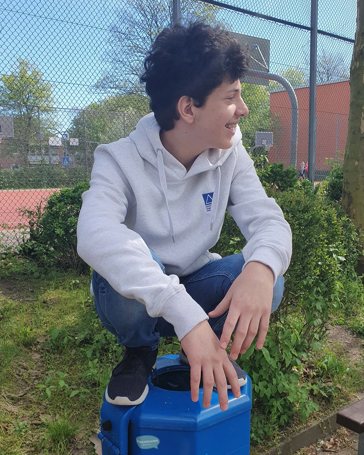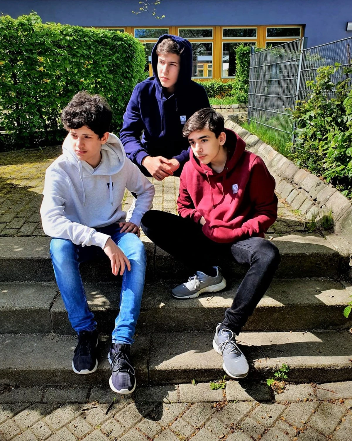 Das Logo wird auf der linken Brustseite aufgestickt (siehe Schülerfotos). Bei den Farbvarianten “MELAGNE WHITE” und “MELAGNE GREY” ist das Logo blau, bei allen anderen Farbvarianten weiß.