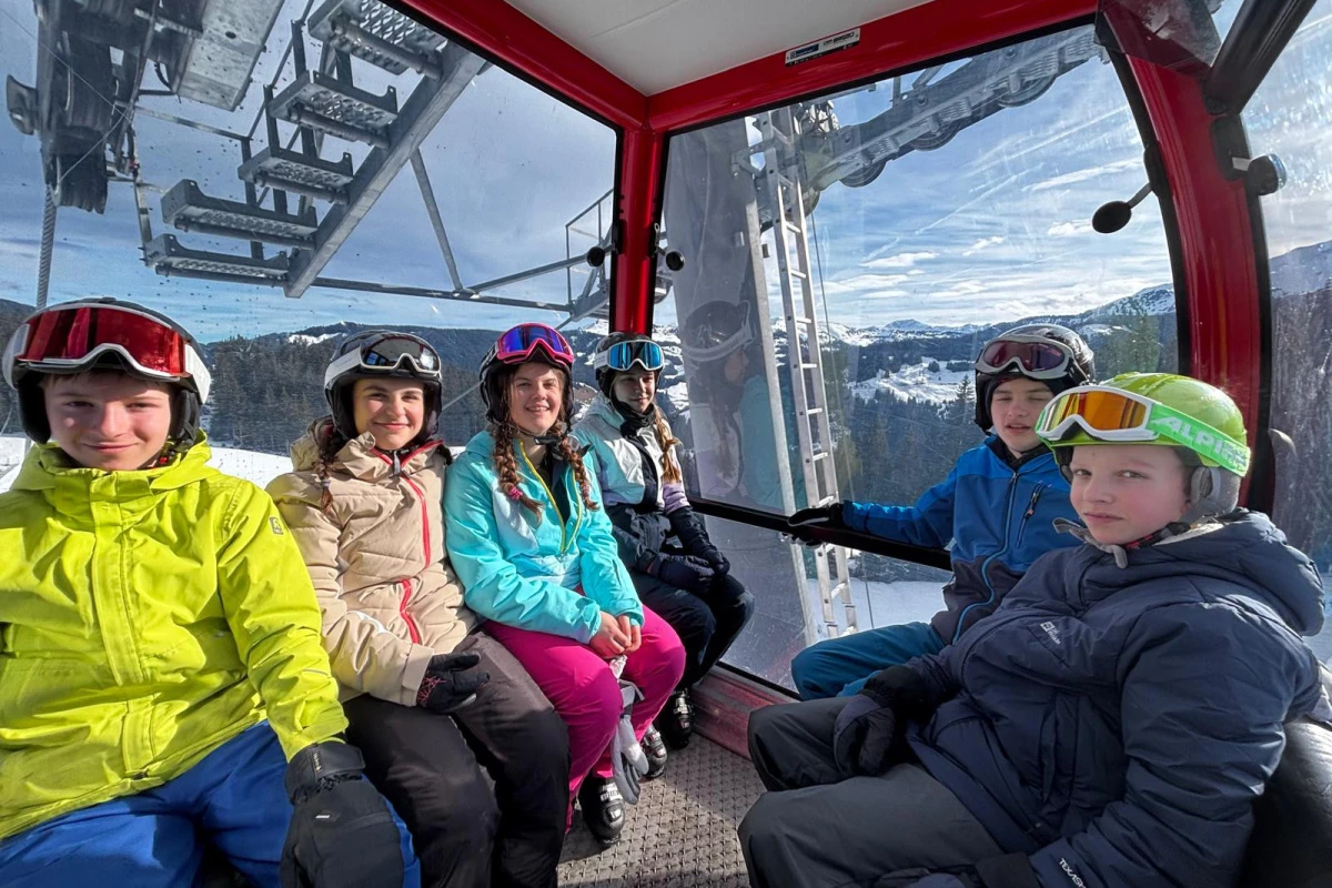 Der zweite Donnerstag war nun der letzte Skitag. Alle genossen ihre letzten Stunden auf Skiern und zur Belohnung für das viele Üben und ihren Fortschritt fuhr die ganze Klasse auf den Gipfel des Berges. Wir genossen die Aussicht vom glitzernden Schnee und machten viele Erinnerungsfotos. Fast alle Gruppen konnten von ganz oben, wo es eisig kalt war, bis zu unserem Treffpunkt auf Skiern fahren und waren sehr stolz darauf, dass sie es alle heil bis nach unten geschafft hatten. Eine Gruppe fuhr mit den Gondeln wieder hinunter, fand dies aber auch nicht schlimm, und genoss die entspannte Hinunterfahrt mit dem schönen Ausblick.