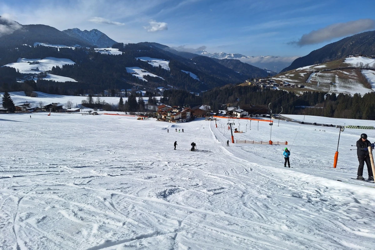 Am Donnerstag mussten wir uns um kurz nach 6 Uhr schon treffen und uns verschlafen auf eine siebenstündige Reise mit zwei Zügen vorbereiten. Unser Ziel war das verschneite Dorf Wildschönau in Österreich. Bei der Ankunft wurde erstmal das gesamte Haus angeschaut, die Zimmereinteilung besprochen und ausgepackt. Was uns am meisten fasziniert hat, war natürlich der Schnee und von dem würden wir die nächsten Tage genug abbekommen.