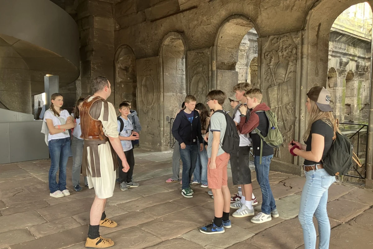Für die Schülerinnen und Schüler des Lateinkurses der Klasse 7 gibt es eine spannende Reise nach Trier, der ältesten Stadt Deutschlands. Hier tauchen die Schülerinnen und Schüler in die Welt der Römer ein und erleben hautnah die antike Kultur und Geschichte. Eine Römerin führt uns durch das antike Trier und ein Gladiator nimmt uns ins Amphitheater mit und berichtet von einem Kampf auf Leben und Tod.